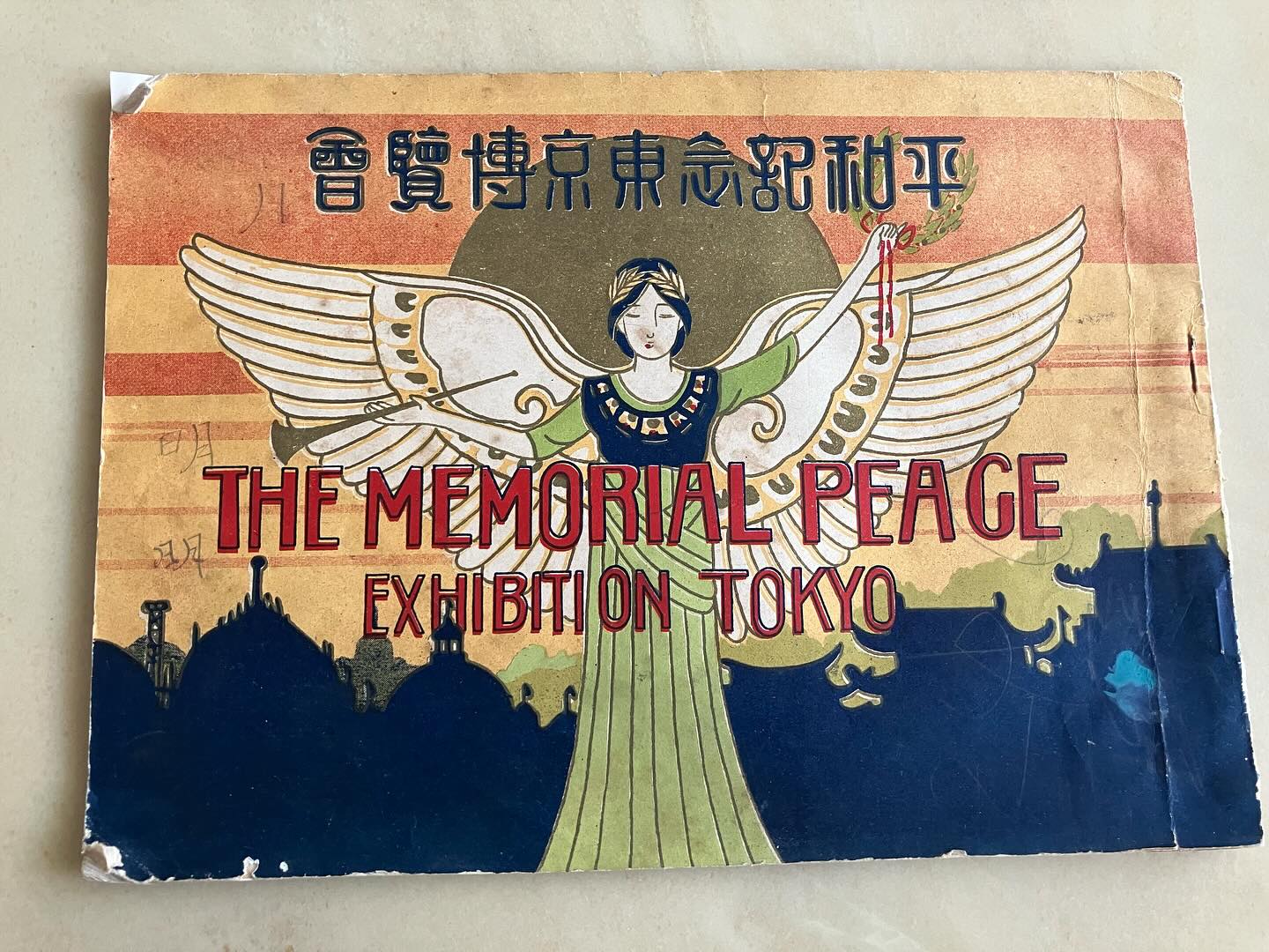1922年に上野公園であった平和記念東京博覧会の案内図 翼の生えた女性が描かれた表紙(1枚目) 配色やデザインがとっても素敵です。 2枚目の写真は、博覧会のシンボル「平和塔」。 昼と夜で雰囲気がガラッと変わりますね! 西脇館開催中の万博展にて展示中! #大正ロマン #コヤノ美術館 #万博展